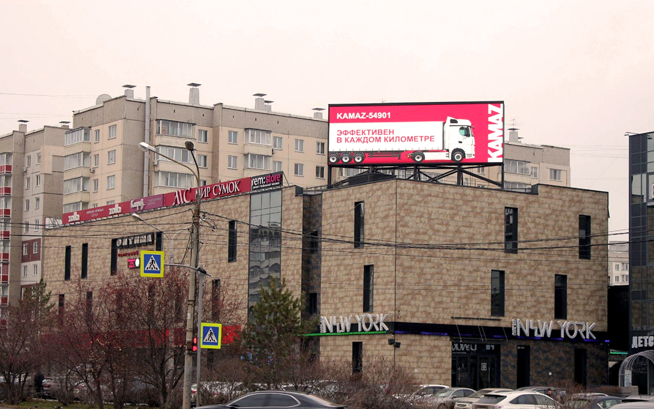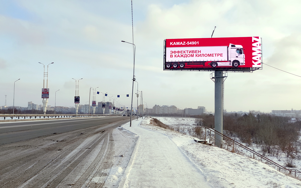 Особенности кампании: Федеральная кампания построена на единой коммуникации и обеспечивает равномерное присутствие бренда в разных регионах страны. Единый месседж повышает узнаваемость продукта КАМАЗ-54901, а выбор локаций ориентирован на прямой контакт с водителями коммерческого транспорта.
